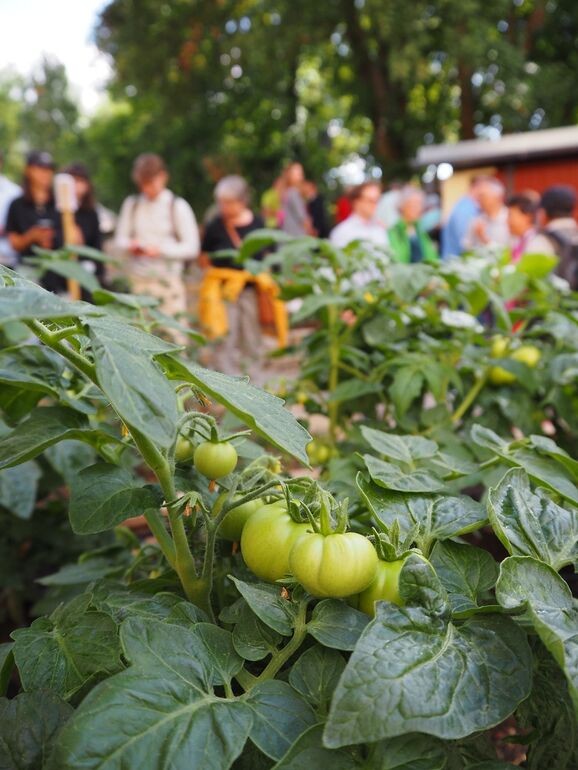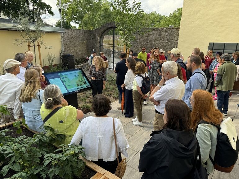 Im Anschluss an die Eröffnung konnten Interessierte an geführten Rundgängen durch den Garten teilnehmen. Dabei wurden nicht nur die liebevoll angelegten Beete, Stauden und klimaresilienten Bäume vorgestellt, sondern auch die eingebauten Sensoren, die unter anderem Bodenfeuchtigkeit und Lufttemperatur an unterschiedlichen Standorten in Echtzeit erfassen. Die gesammelten Daten werden direkt im Garten auf Displays visualisiert und machen ökologische Zusammenhänge greifbar – vom Wasserkreislauf bis zur Wirkung von Versiegelung versus Begrünung auf das Mikroklima.