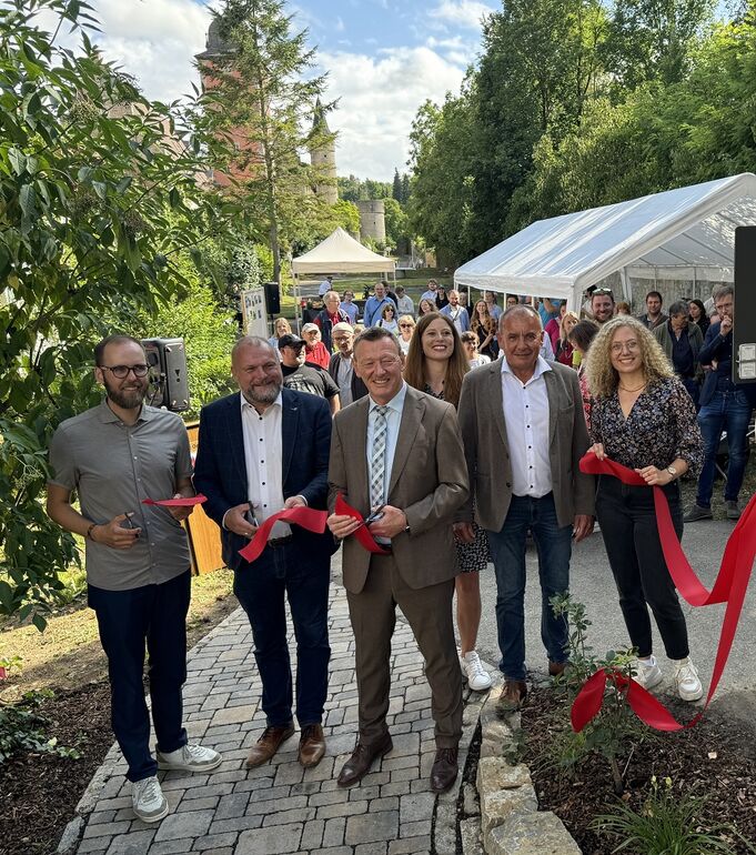 Zum offiziellen Auftakt der Veranstaltung begrüßten Projektleiter Lukas Richter (Smarte Region), Landrat Thomas Eberth sowie Ochsenfurts Bürgermeister Peter Juks die zahlreich erschienenen Gäste. In ihren Grußworten betonten sie die zentrale Rolle des Gartens als Ort der Bildung, der Begegnung und als anschauliches Beispiel für praktische Klimaanpassung. „Mit diesem Projekt hat die Smarte Region einen Garten geschaffen, der nun – im wahrsten Sinne des Wortes – weiter wachsen darf“ erklärte Lukas Richter.